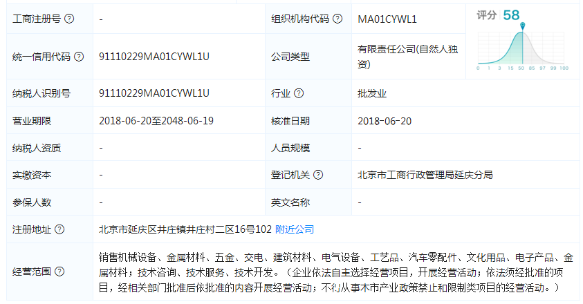 北京北创华清机械设备有限公司工商注册信息: